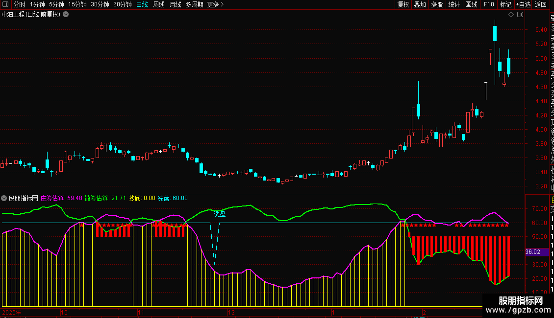 DRAWTEXT(庄筹估算>60,58,'★'),COLORRED;
