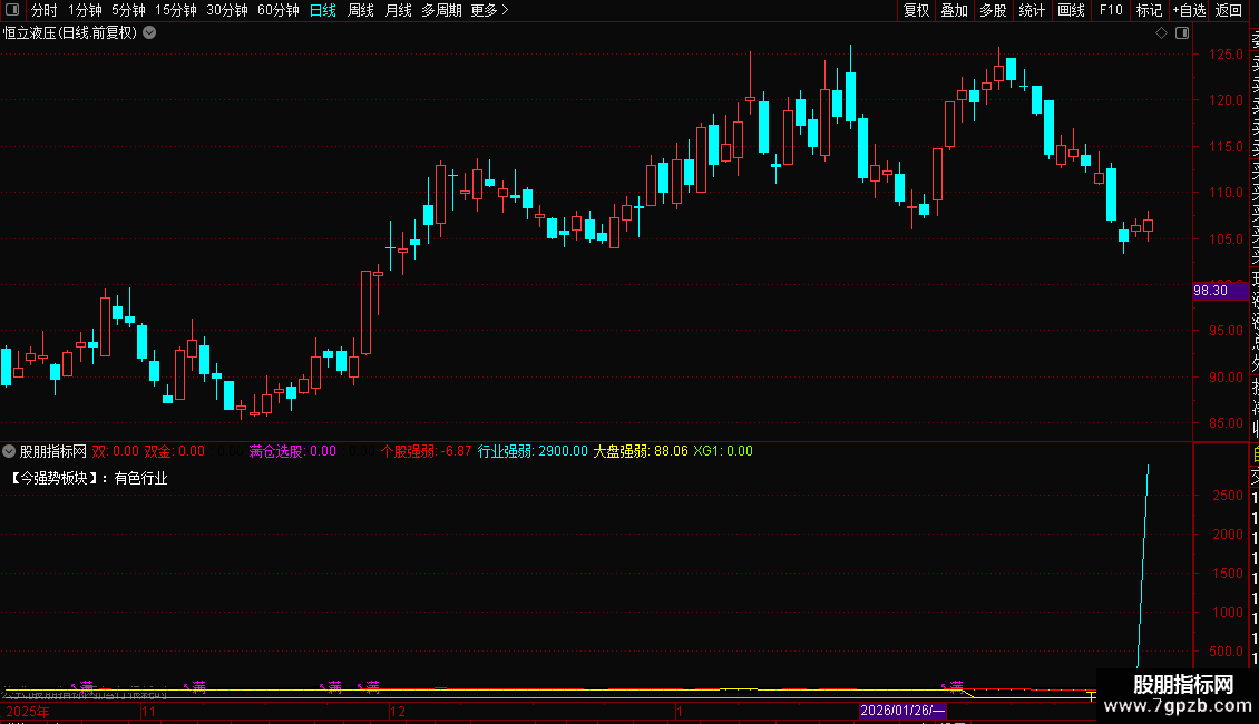 DRAWTEXT(CURRBARSCOUNT=6,行业强弱,HYBLOCK),COLORYELLOW;