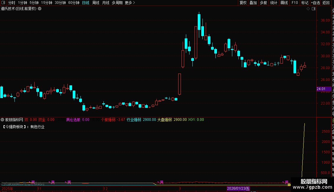 DRAWTEXT(CURRBARSCOUNT=3,大盘强弱,ZSBLOCK),COLORRED;