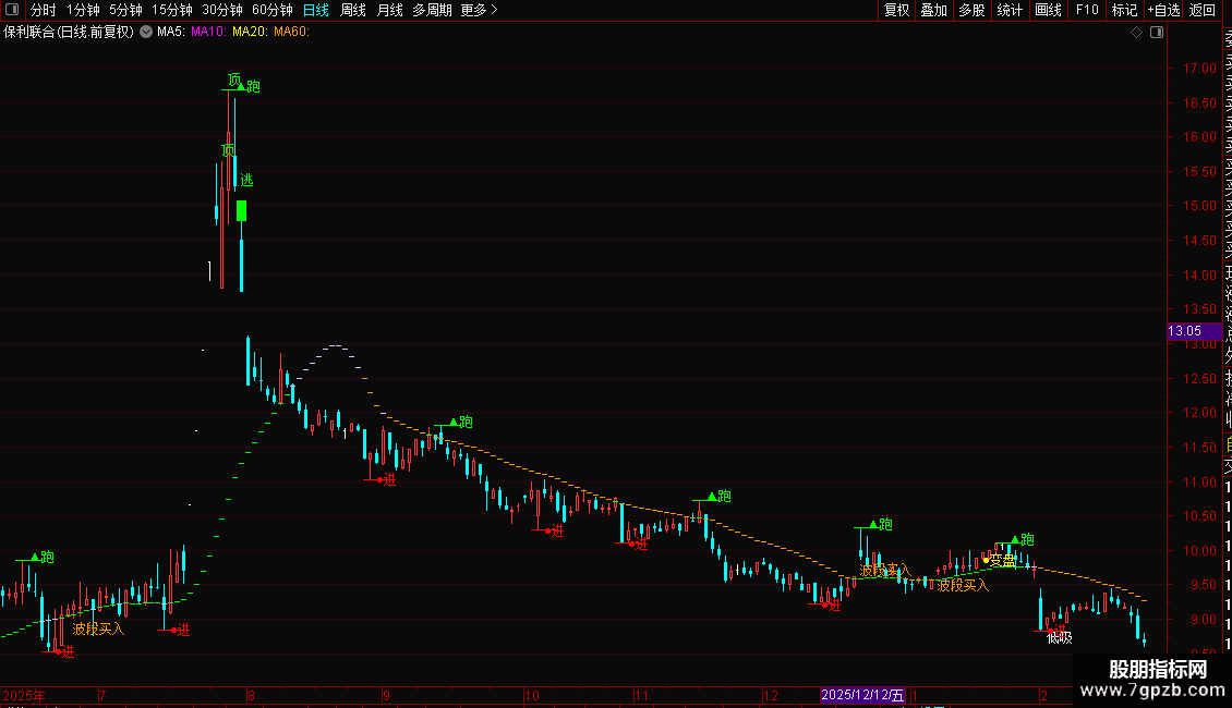 DRAWTEXT(CROSS(天线,多方趋势),H*1.04,'逃'),COLOR00FF00;