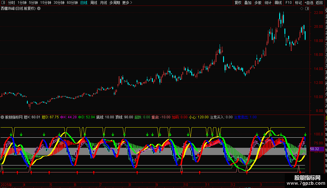 加码:IF(CROSS(中J,REF(中J+0.01,1)) AND BDDD AND BETWEEN(中J,20,60),1,0),COLORRED,NODRAW;