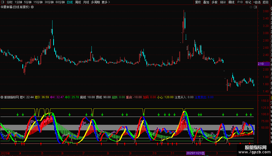 超跌:IF(中J<0,10,0),COLORLIGREEN;