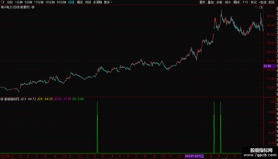 本指标已提供无加密源码,各位可以根据自己的操作策略,对本指标中的参数进行微调,以便提高胜率,或更好地找到个股低位启动介入点。