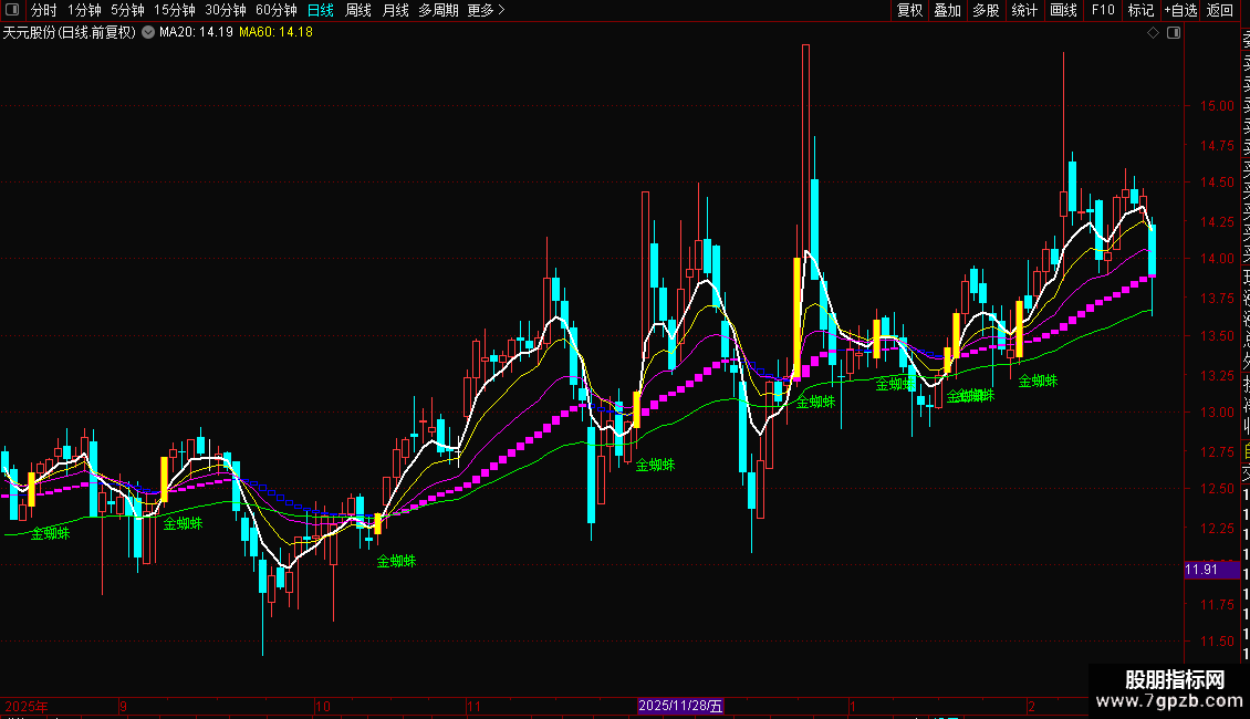 DRAWTEXT(一阳穿三线,L-0.1, '金蜘蛛'),COLORGREEN;