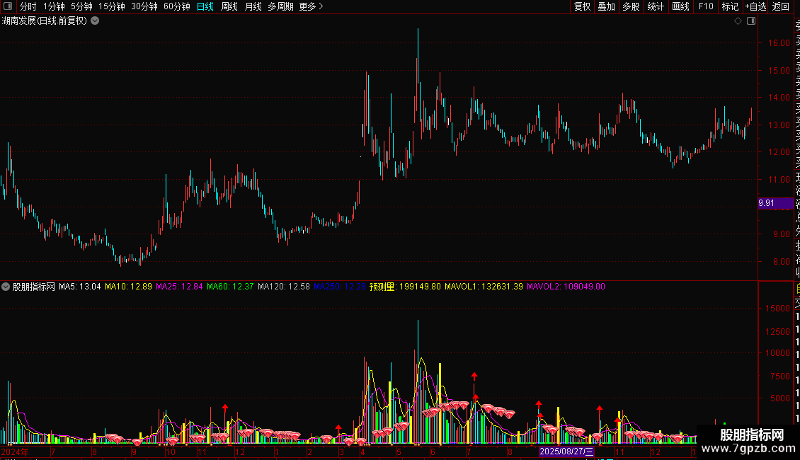 DRAWICON((MA(V,4)*4+V)/5>=MA(V,60) AND MA(V,5)<MA(V,60),预测量*1.2,1);