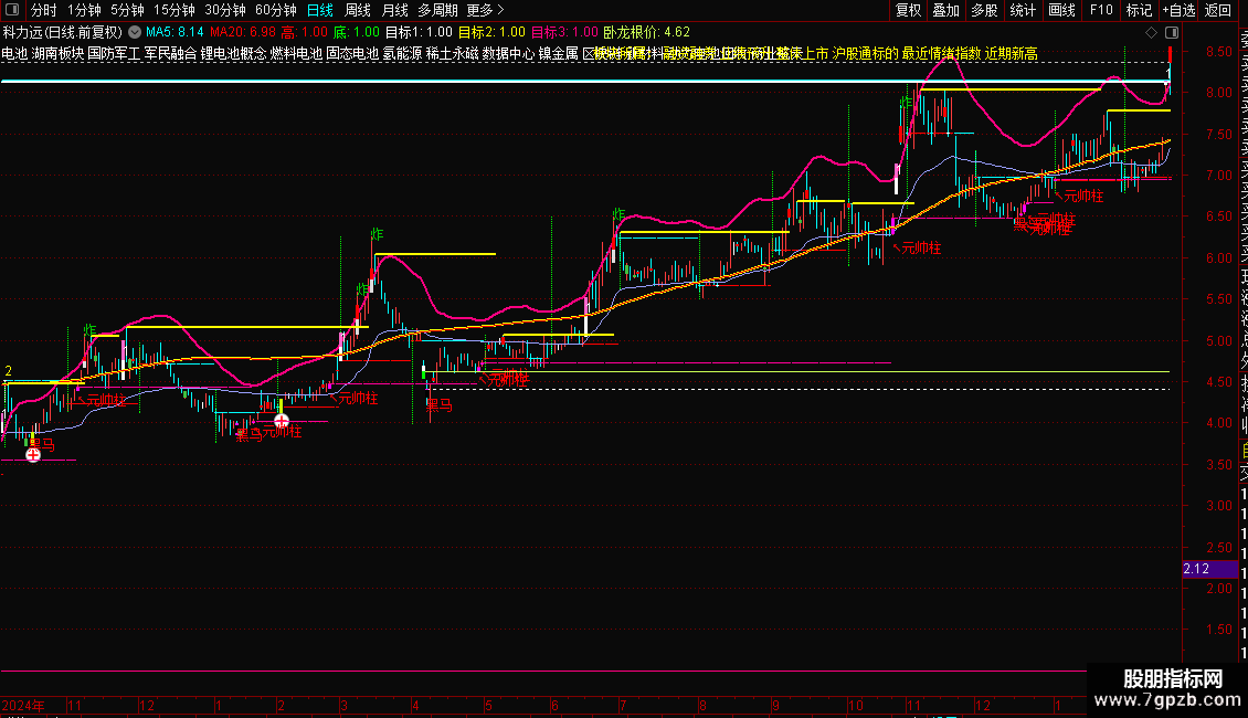 金线王:EMA(A2,200)*1.118,LINETHICK2,COLORYELLOW;