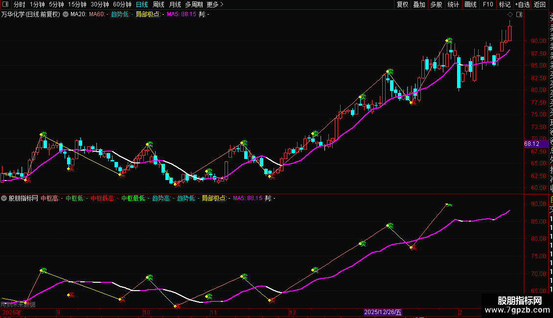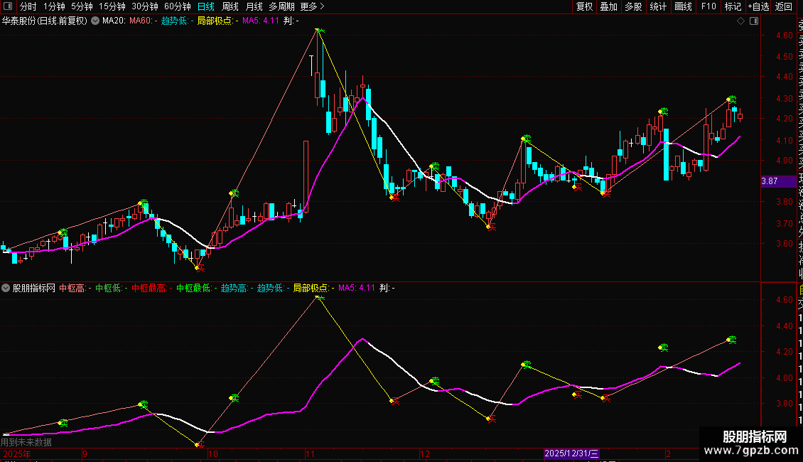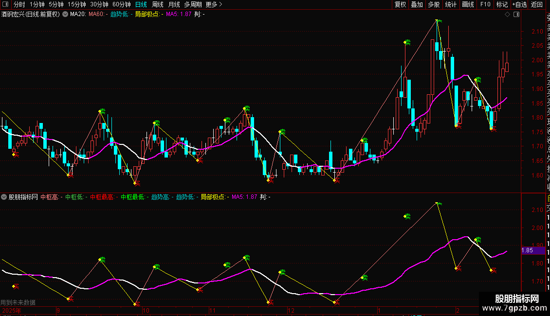 局部极点:IF(极点保留=-1,L,IF(极点保留=1,H,DRAWNULL)) CIRCLEDOT COLORYELLOW;