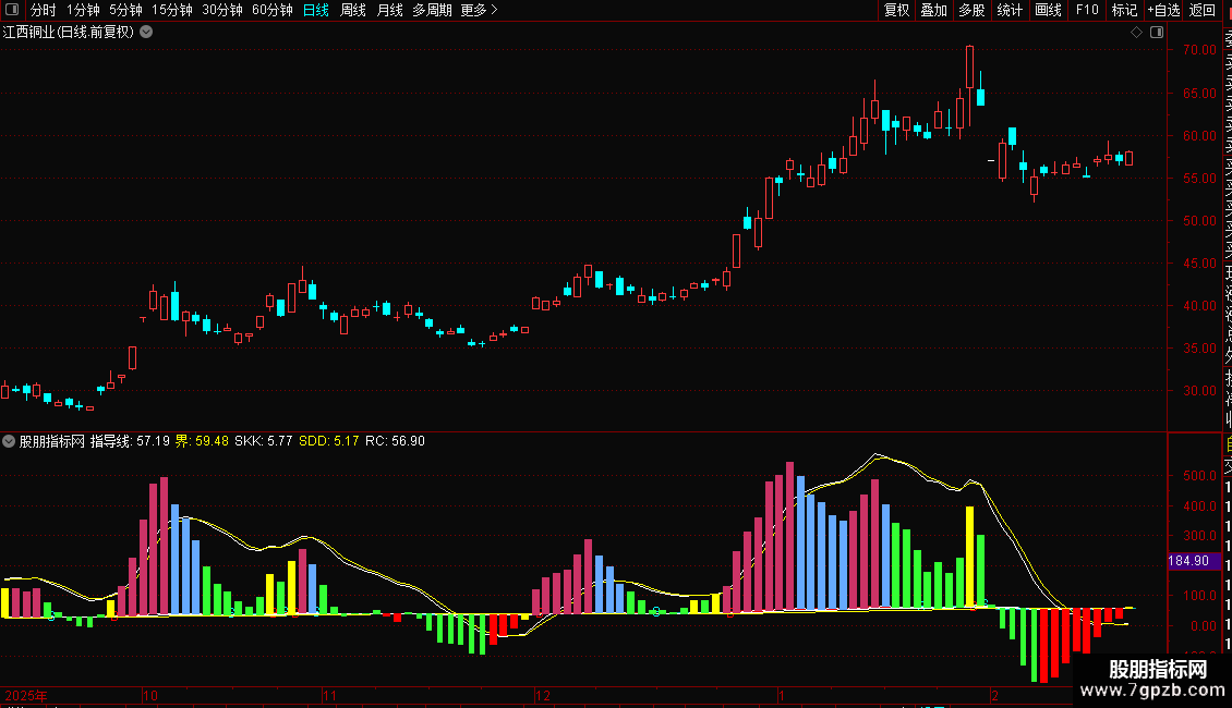STICKLINE(DK<0 AND 多方<空方 AND SK<SD,RC,RC+DK,1,0),COLOR33FF33;