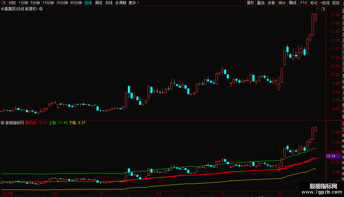 下轨: 筹码峰*0.9,COLORYELLOW;