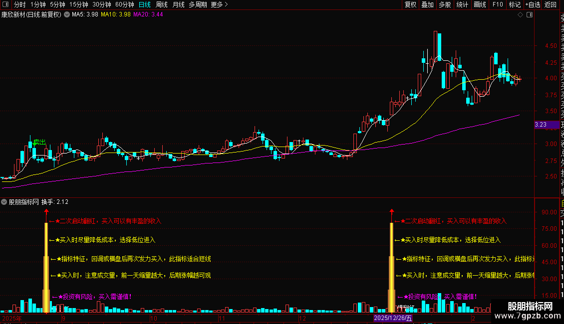 DRAWTEXT(XG1 ,14,' ←★投资有风险,买入需谨慎!'),COLORMAGENTA;