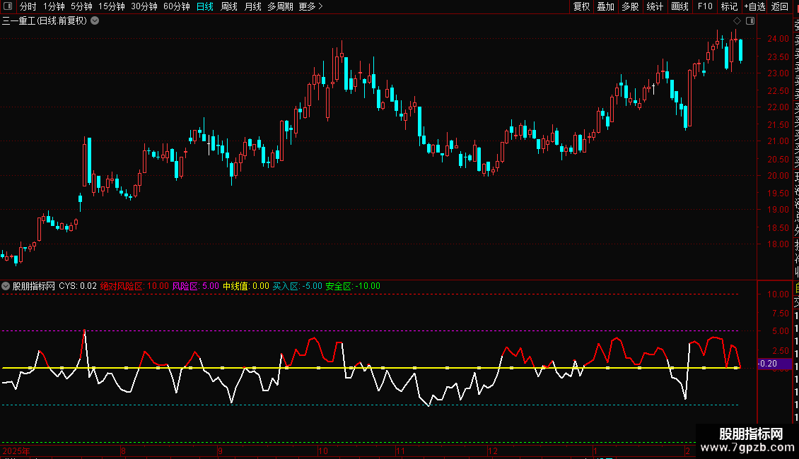 0:仔细观察会发现,绝大部分个股只有在上穿0线后才会有一段行情,或者一个波段。本指标会在CYS上穿0线时变成红色,此时你就要注意标的股了。