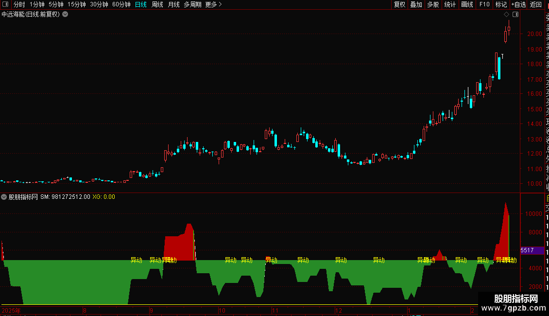 DRAWTEXT(XG=1,CONST(MA(SM,20)),'异动'),COLORYELLOW;