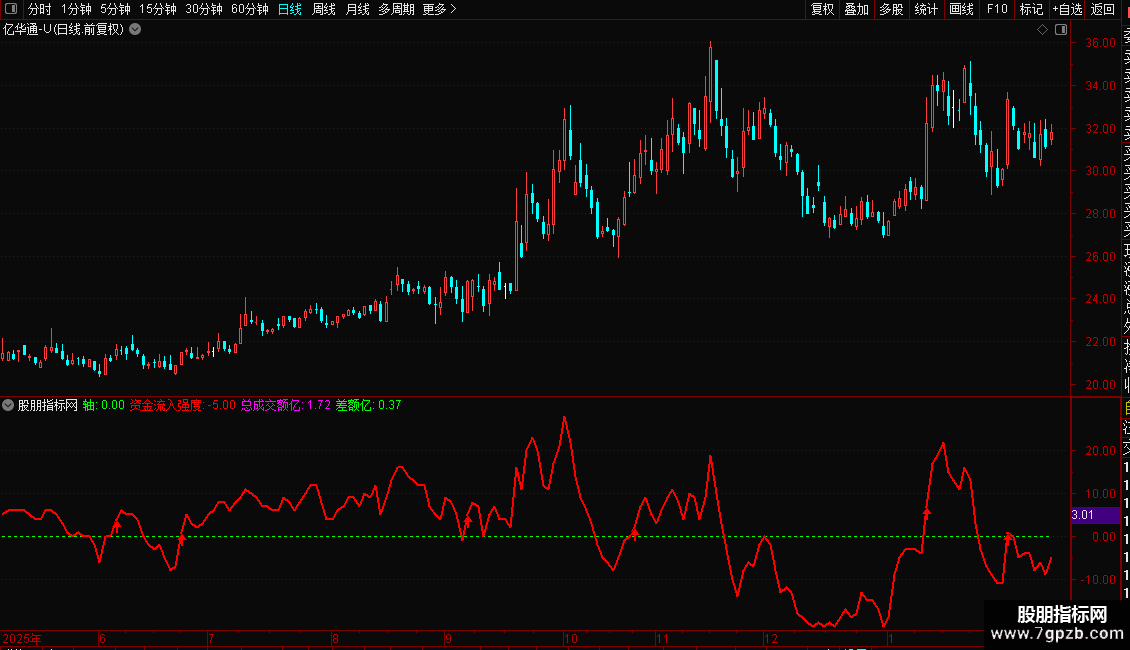 资金流入上穿0轴时买入,资金流入下穿0轴时必须卖出。