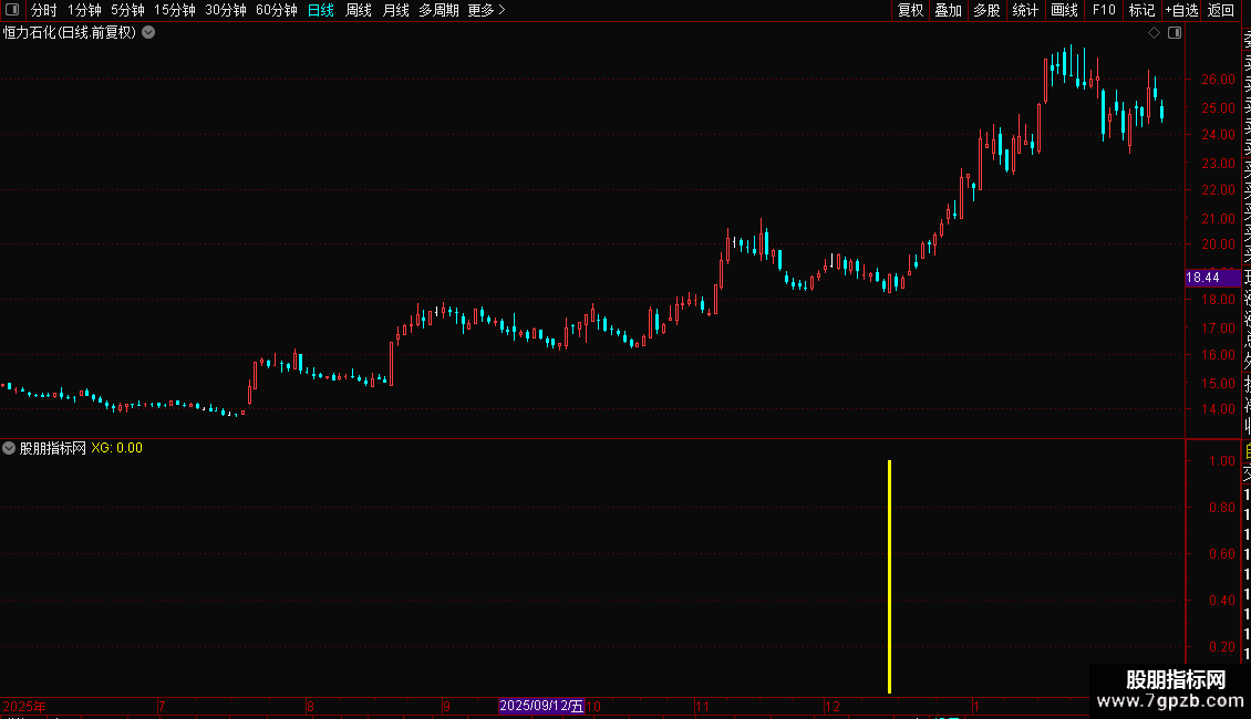 4. 信号出现时,在副图或K线图上标记黄色柱状线。