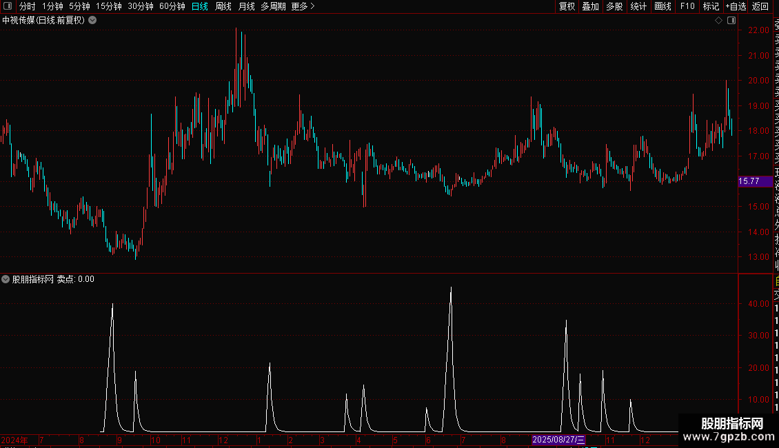 指标核心是计算一个“卖点”信号。它通过衡量近期最低价的下行动能,并结合价格相对于近期低点的位置,生成一个0-100的数值。当该值较高时,暗示下跌动能可能正在积聚或价格处于相对低位区域,提示潜在的卖出或风险区域。指标中大量重复的RSI计算代码无实际作用,主要输出为VAR8(即卖点)。