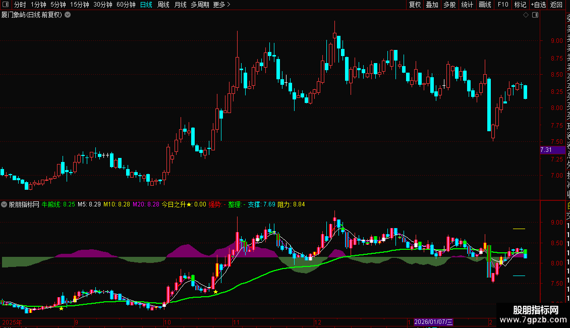 2、绿色牛熊线之上中线看涨,之下看空,清晰明了。