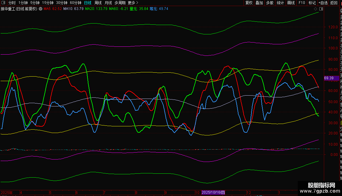 指标通过价、量、筹三个维度构建多轨通道系统,用于识别超买超卖区域及潜在转折点。