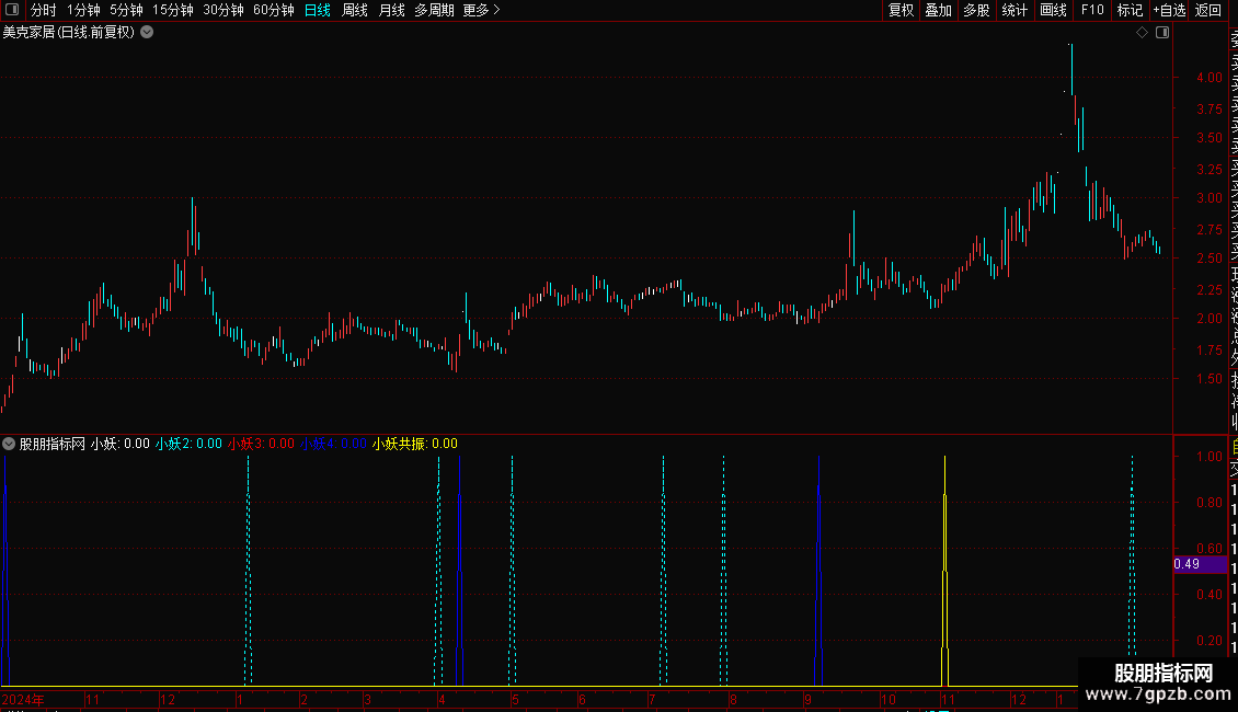 小妖共振:当多个信号同时出现时,用黄色标记共振信号,提示买入机会更强。