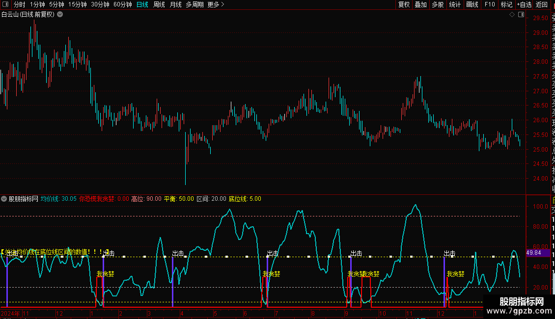 你恐慌我贪婪:IF(均价线<=8,30,0),COLORRED,LINETHICK2;