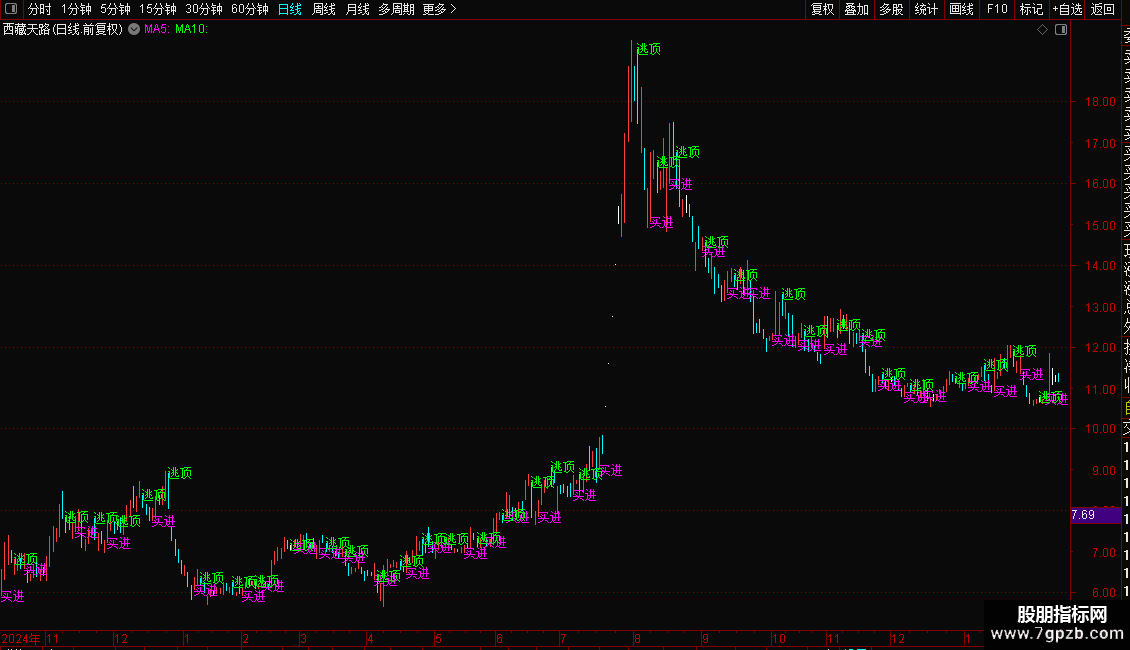 DRAWTEXT(FILTER(VAR1A=1,5),HIGH,'逃顶'),COLOR00FF00;