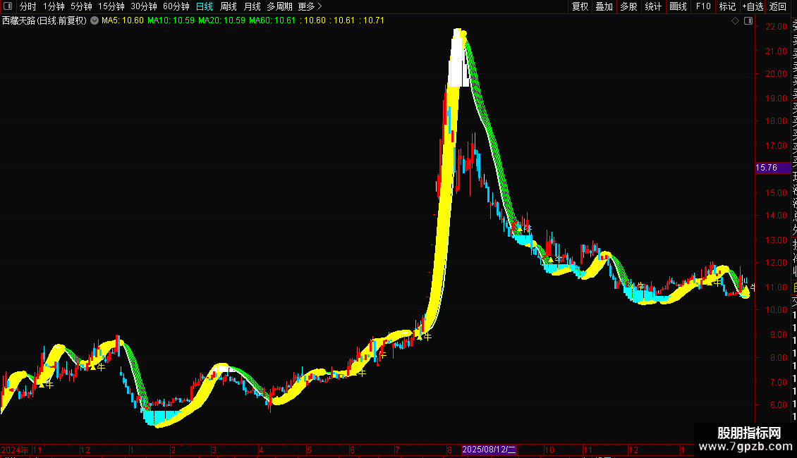 将副图指标加载到图表中,观察“雪山顶”与各均线的相对位置、交叉情况以及价格在“顶/底”通道中的位置。当出现“▲牛”标记且趋势线呈现多头排列时,可结合其他分析寻找买入机会。选股公式可直接用于筛选出满足`EA上穿G3`条件的股票。