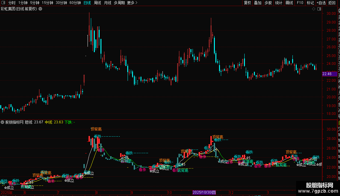 DRAWTEXT(CROSS(FF,MA15),BBF,'底背离'),COLORA6E500;