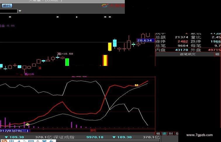 2.走势线上穿主力线伴有吸筹粉柱,为最佳的选股标准;