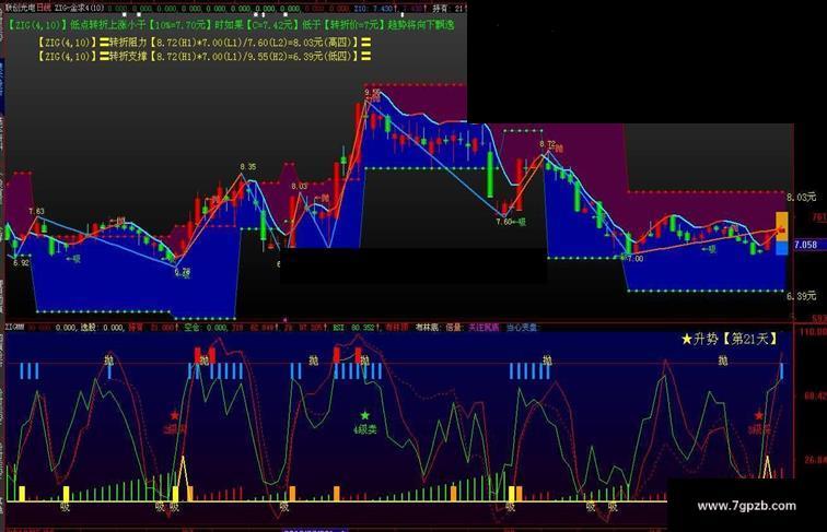 这里边我最看好的是以下两句.它的线是有趋势性的股票涨跌有他参考很有价值.就是图上的分界线他的变色.和K线在他的上下都很说明问题.不信你就好好琢磨琢磨.ZIG的作用真的很强大.就看你会不会用.能不能用好它为你服务了.