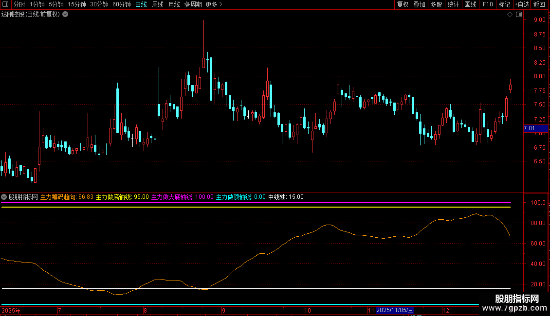 输出主力做底轴线:95,画黄色 ,线宽为2