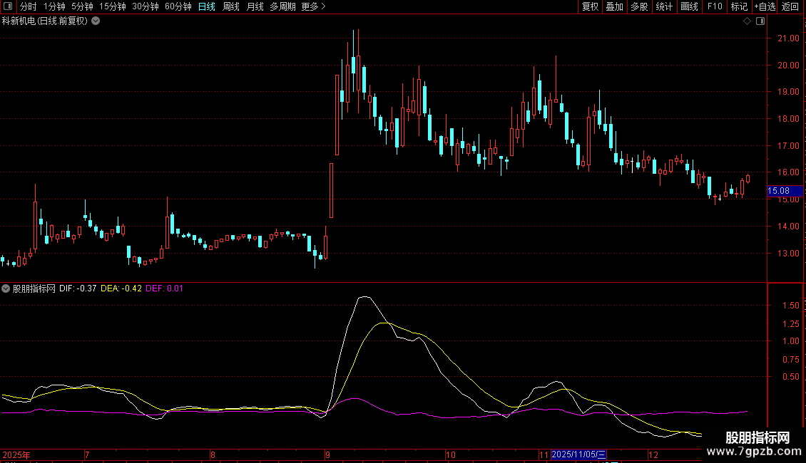 输出DIF:收盘价的SHORT日指数移动平均-收盘价的LONG日指数移动平均