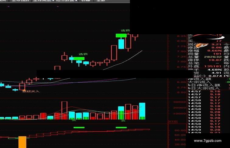 DRAWTEXT(CROSS(天线,多方趋势),H*1.04,'逃顶'),COLOR00FF00;