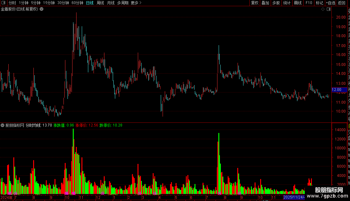 10. 高低点标记:在当日最高价和最低价位置分别标注“高”和“低”。