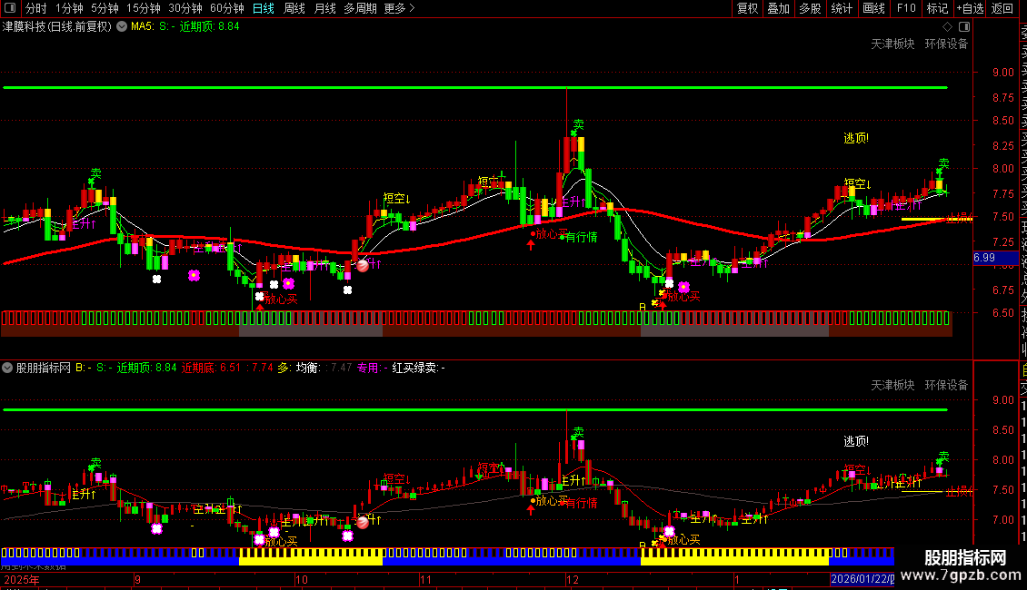 2. 趋势判断:通过多条均线(如3日、5日、13日、21日、34日、长期趋势线)的组合与交叉,以及“主升”、“逃顶”等提示,判断股价的短期、中期和长期趋势方向。
