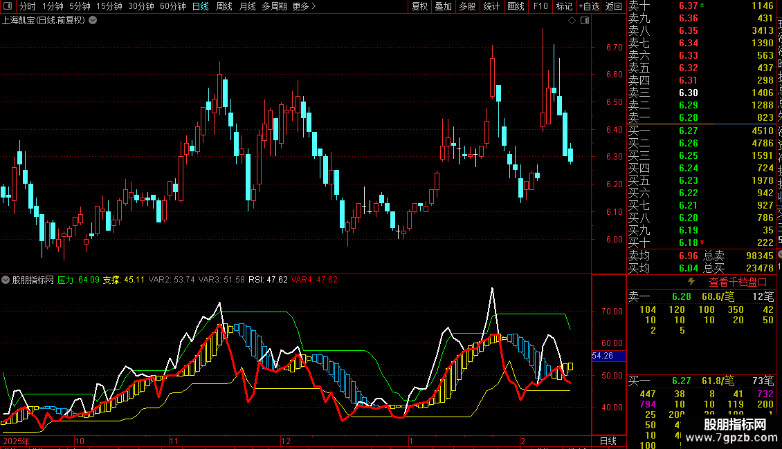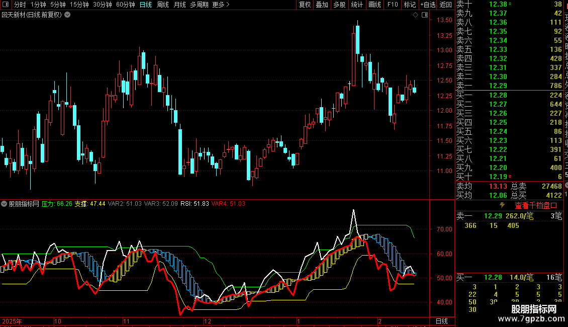 4. 信号线:生成一条特殊曲线(红色粗线),当RSI值低于其8日均线时取RSI值,否则取均线值,用于突出RSI走弱或位于均线之下的状态。
