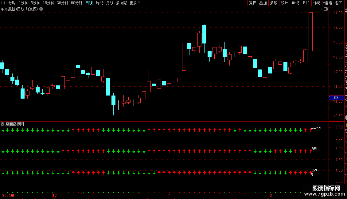 红色向上箭头(图标1):表示对应指标发出看多信号。