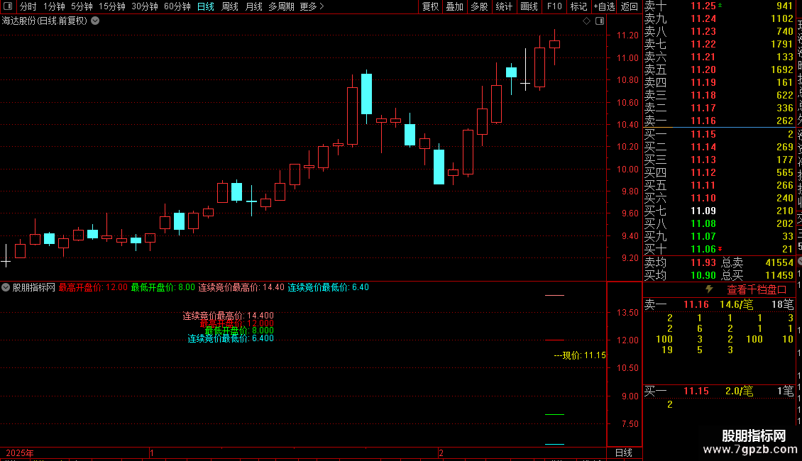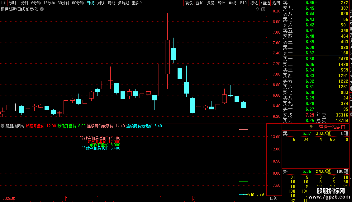 STICKLINE(ISLASTBAR,连续竞价最低价,连续竞价最低价,5,0),COLORCYAN;