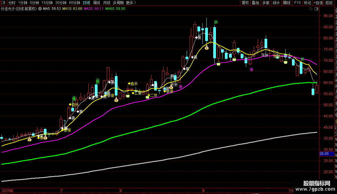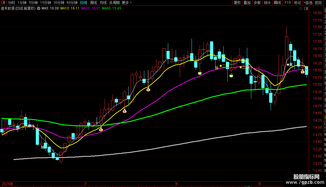 图标信号:如孕线、地天针等特殊K线组合的提示。