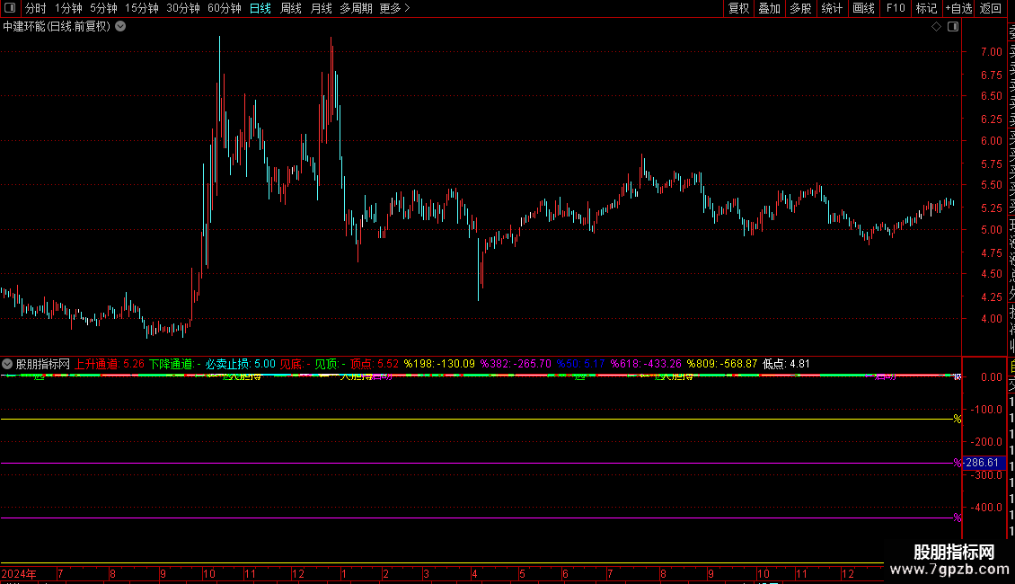 根据MACD(7,19,9)的形态对K线进行染色,直观显示多空动能: