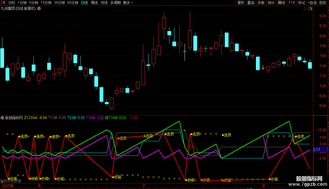DRAWTEXT(mS1234=LOWZIG ,-LOW,'★抄底'),COLORYELLOW;