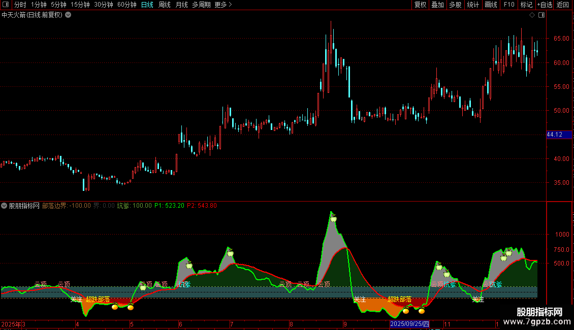 DRAWTEXT(CROSS(-100,CZ),-120,'超跌部落'),COLORYELLOW;