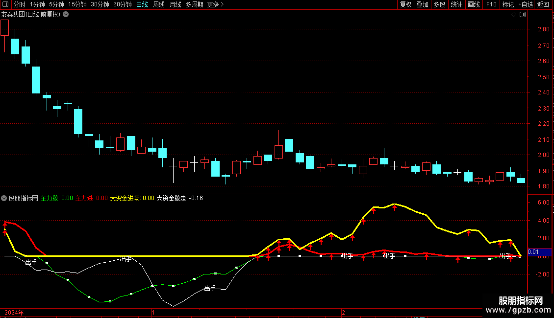大资金撤走:IF(VB<=0,VB,0),COLORWHITE;