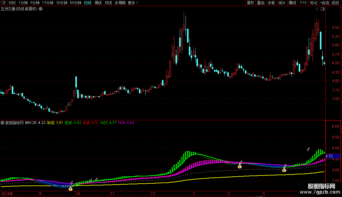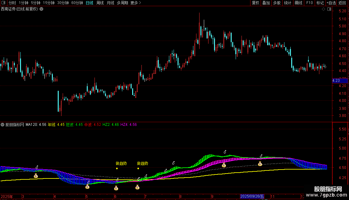 短波:EMA(HZ,1),COLOR00DD00,LINETHICK1;