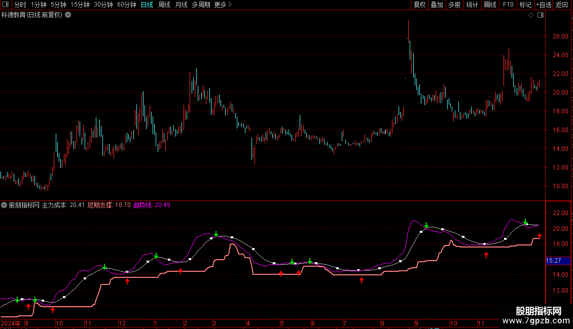 主力成本:=EMA(X,13),LINETHICK1,COLORLIGRAY;