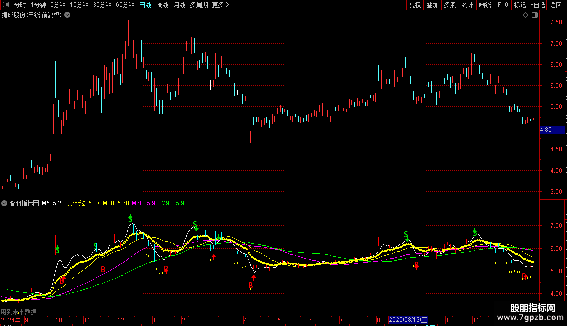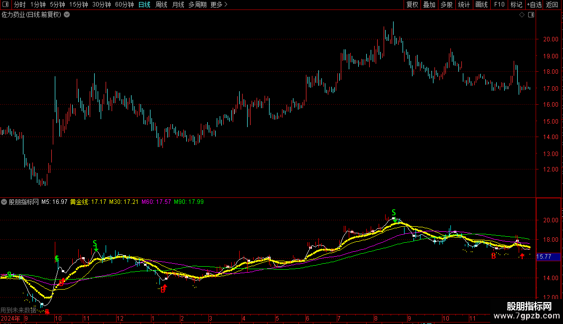 黄金线:EMA(C,18),POINTDOT,LINETHICK4,COLORYELLOW;