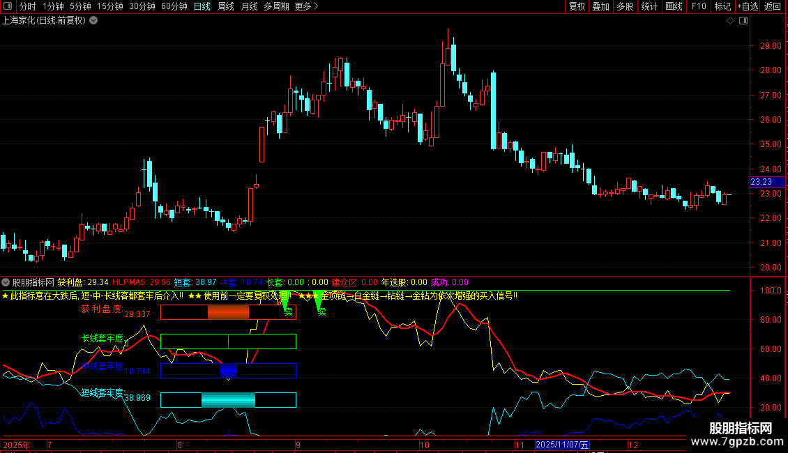DRAWTEXT(CURRBARSCOUNT=116,30,'短线套牢度:'),COLORFFFF00;