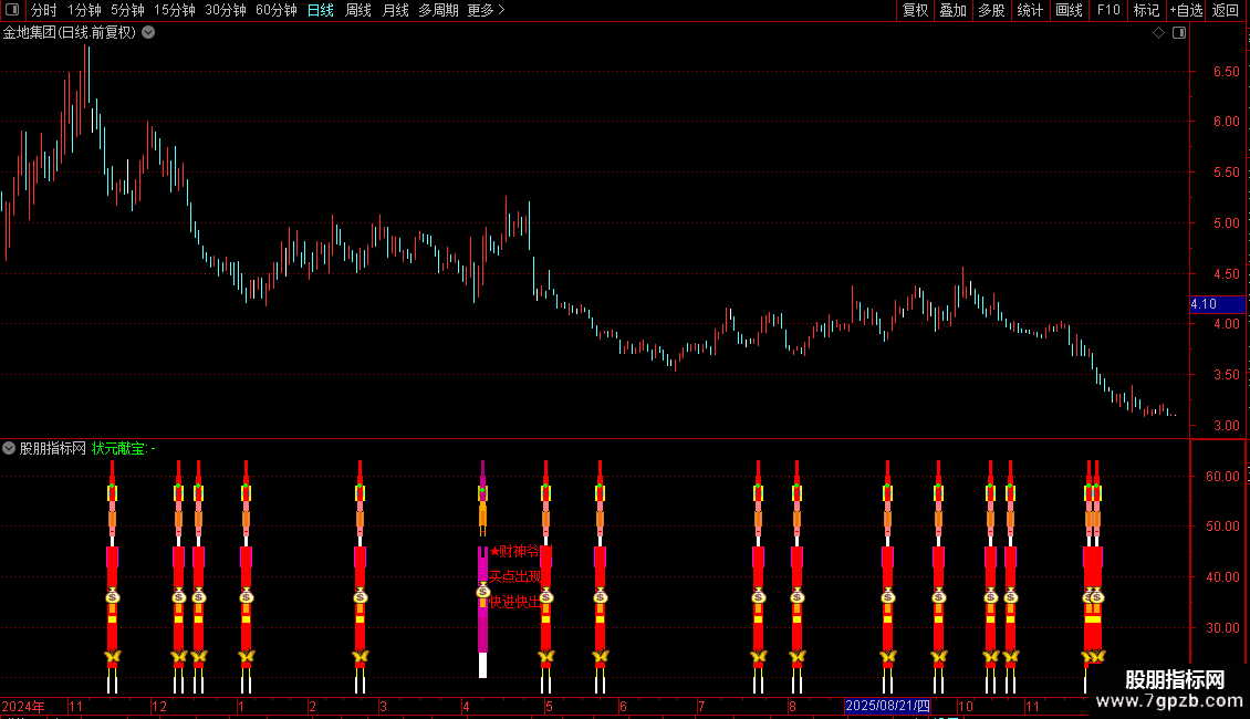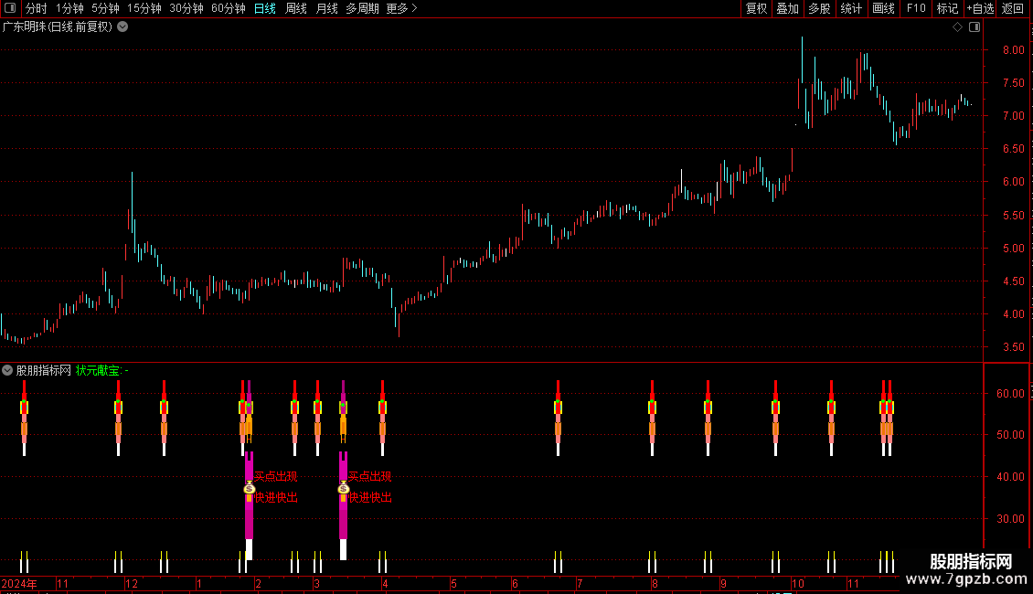 状元献宝:IF(状元郎,58,DRAWNULL),LINETHICK4,POINTDOT,COLORGREEN;