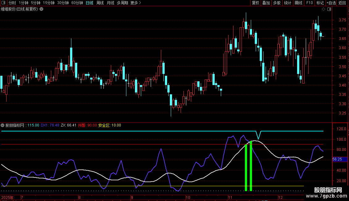 DX2:=EMA(DX1,12),COLOR889900,LINETHICK2;