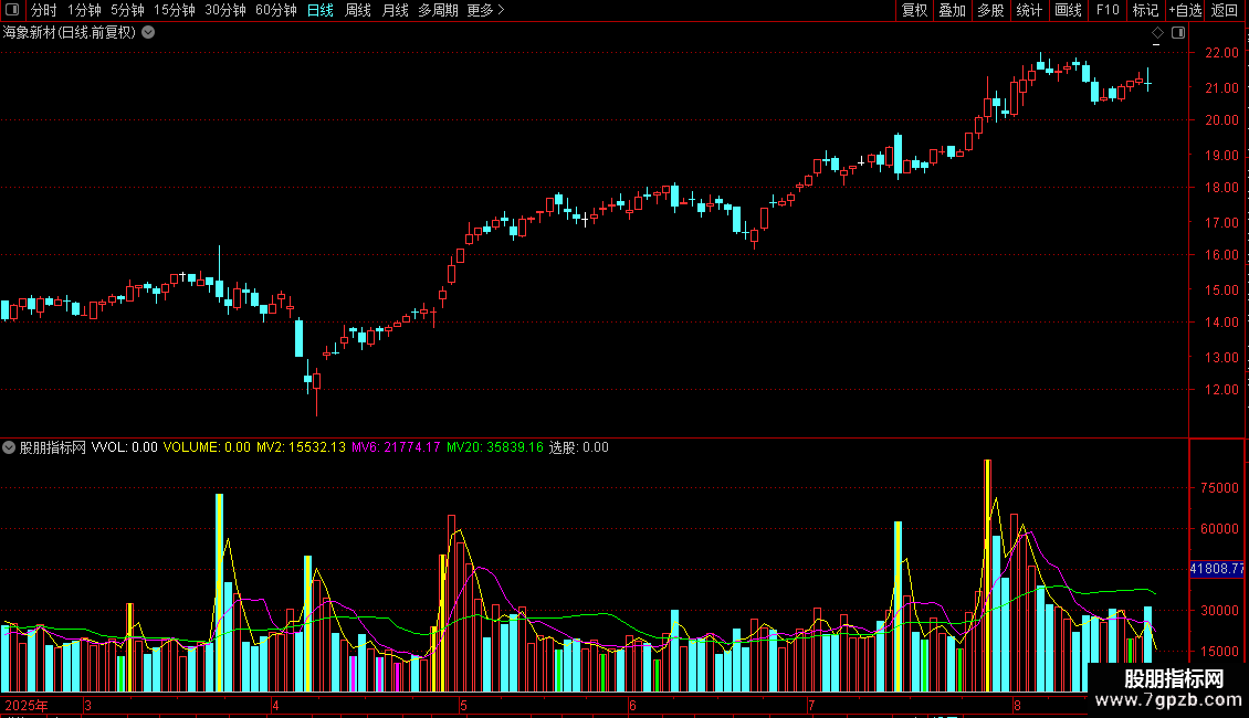 STICKLINE(CURRBARSCOUNT=1 AND PERIOD=5,VVOL,0,-1,-1),COLOR00C0C0;