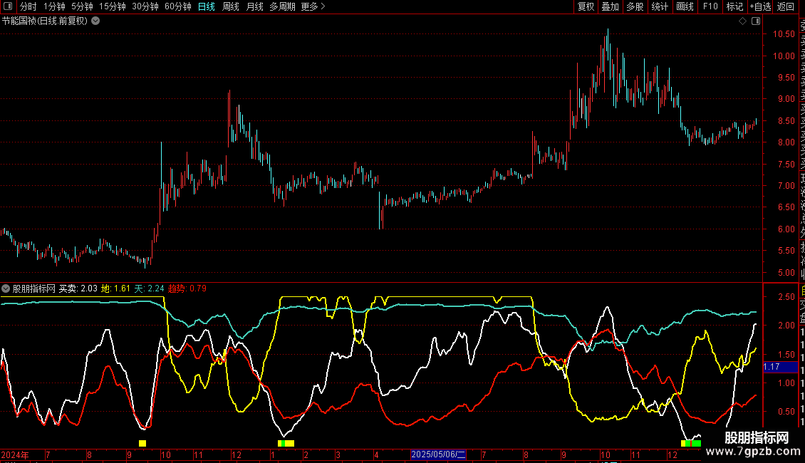4. 天线:绿色曲线,是“地线”基础值的非线性变换(平方运算),用于放大其变化特征。与“地线”结合观察。