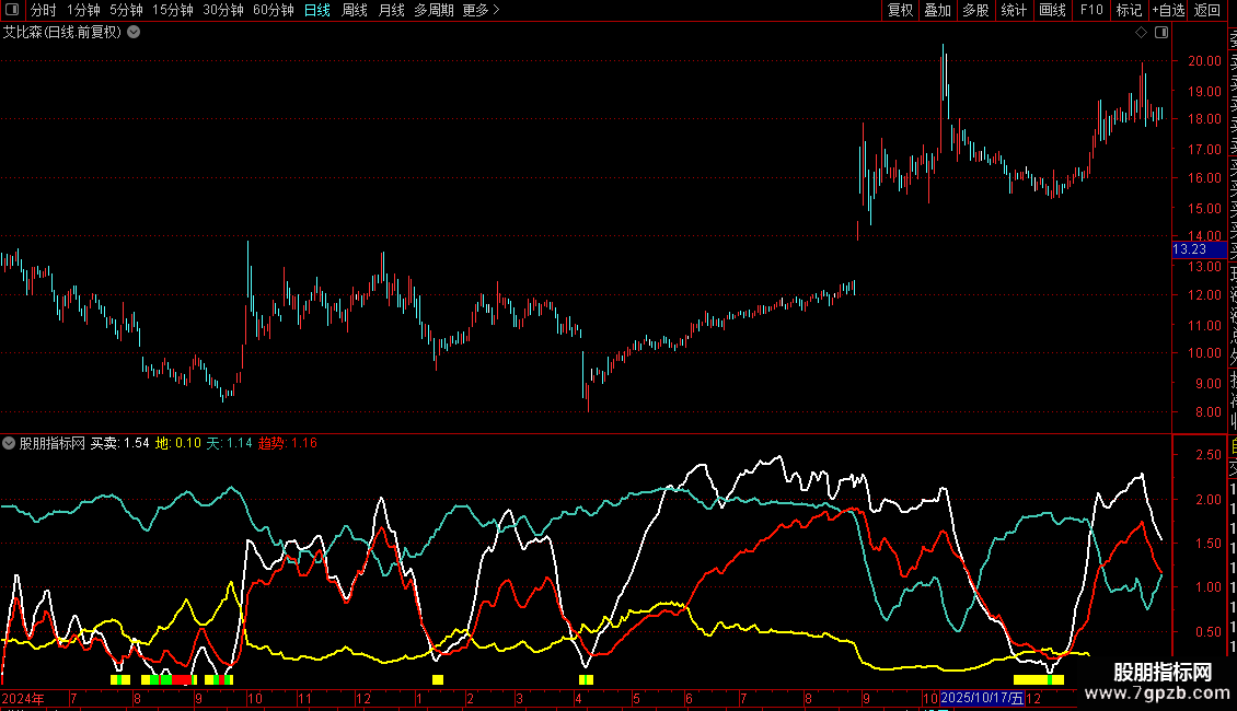 2. 彩色柱状带:位于副图底部,用于快速识别“买卖线”所处的强弱区间。